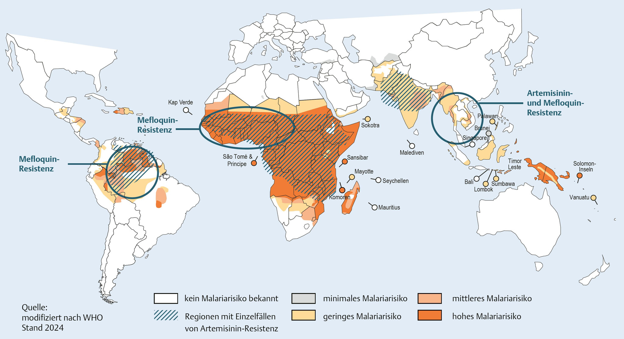 - Eine medikamentöse Malariaprophylaxe sollte nach einer Risiko-Nutzen-Analyse erfolgen.